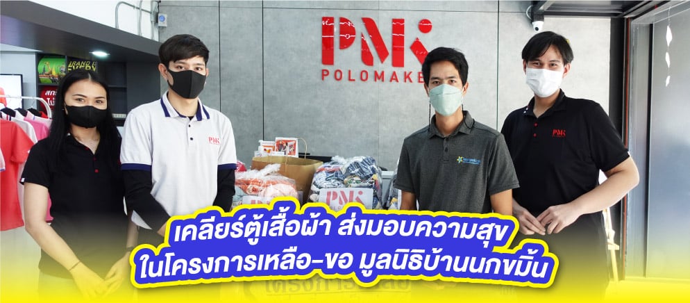 เพราะการให้ไม่มีที่สิ้นสุด PMK Polomaker จึงขอเป็นตัวกลางในการส่งมอบเสื้อผ้าบริจาค ให้แก่องค์กรการกุศลหรือมูลนิธิที่รับของบริจาคแล้วนำไปส่งต่อให้แก่ผู้ขาดแคลนเครื่องนุ่งห่ม จึงได้จัดตั้งโครงการเคลียร์ตู้เสื้อผ้า ส่งมอบความสุขนี้ขึ้นมา โดยของที่สามารถนำมาบริจาคได้ จะเครื่องนุ่งห่มมือสองที่ยังใช้ได้สภาพดีเท่านั้น ซึ่งโครงการนี้ที่บริจาคให้กับโครงการเหลือ-ขอ มูลนิธินกขมิ้น ได้เสร็จสิ้นไปเมื่อวันที่ 14 กุมภาพันธ์ 2566 ที่ผ่านมา แต่ PMK Polomaker ขอสานต่อโครงการเคลียร์ตู้เสื้อผ้า ส่งต่อความสุขไปอีกเรื่อยๆ ให้กับมูลนิธิและโครงการอื่นๆที่มุ่งหวังช่วยเหลือผู้ขาดแคลน และผู้ด้อยโอกาสต่อไป