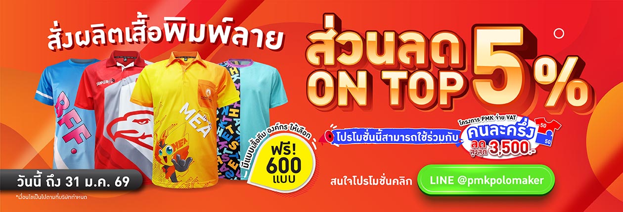 โปรโมชั่นพิเศษ 1 - 28 ก.พ. สั่งผลิตเสื้อพิมพ์ลาย ลดสูงสุด 7,000 บาท