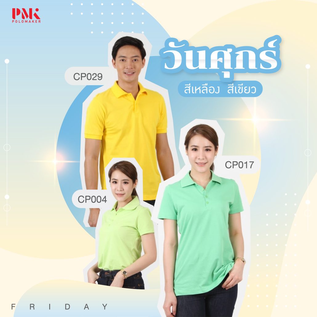 สีเสื้อมงคลสำหรับวันศุกร์ คือ สีเขียว และ สีเหลือง