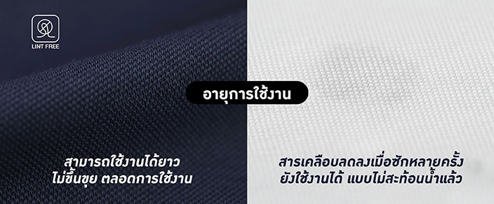 - ไม่ขึ้นขุยตลอดการใช้งาน ใช้ได้ยาวนานไม่ต้องเปลี่ยนเสื้อบ่อย