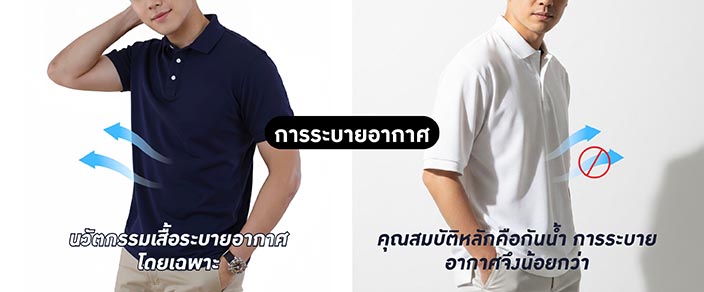- ระบายเหงื่อ ระบายกาศได้ดีกว่าเสื้อโปโลทั่วไป ช่วยลดความเหนียวตัวระหว่างทำงาน