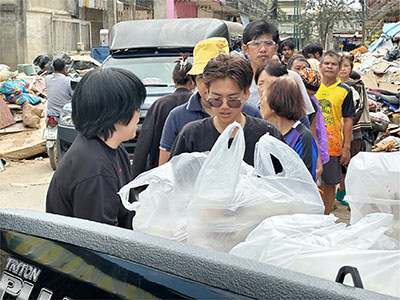 หลังจากประสานงานเรื่องการบริจาคกับทางมูลนิธิโรงพยาบาลสงขลานครินทร์ PMK ก็ได้เดินทางลงพื้นที่หาดใหญ่ด้วยตัวเองเพื่อส่งต่อกำลังใจให้กับผู้ที่ได้รับผลกระทบจากน้ำท่วมในช่วงเวลาที่ทุกคนยังคงเหนื่อยล้าทั้งร่างกายและจิตใจ สิ่งที่นำติดตัวไปคือเสื้อจาก PMK อาหาร น้ำดื่ม และความตั้งใจที่จะไปพบปะพูดคุยกับชาวบ้านแบบใกล้ชิด การได้เดินเข้าไปทักทาย ถามไถ่ สอบถามความเป็นอยู่หลังเหตุการณ์ เป็นสิ่งที่ช่วยให้เราได้เห็นภาพจริงของผู้คนที่ต้องเผชิญกับน้ำท่วมครั้งนี้ ทั้งสภาพบ้านที่ยังไม่เข้าที่ ความเสียหายที่ต้องจัดการ และความพยายามของแต่ละครอบครัวที่ค่อย ๆ กลับมาดำเนินชีวิตตามปกติ แม้จะยังลำบากอยู่ไม่น้อย แต่สิ่งที่สัมผัสได้อย่างชัดเจนคือพลังใจของคนหาดใหญ่ที่เข้มแข็งและพร้อมก้าวต่อไป การได้ยืนพูดคุย มอบของจำเป็น และมอบรอยยิ้มเล็ก ๆ ให้กันในพื้นที่จริง ทำให้ PMK รับรู้ถึงคุณค่าของการช่วยน้ำท่วม ว่าบางครั้งการที่เราเดินเข้าไปในวันที่เขายังไม่พร้อมเต็มร้อย ก็สามารถทำให้เขารู้สึกว่าเขาไม่ได้เผชิญเรื่องนี้อยู่เพียงลำพัง และนั่นคือสิ่งที่สำคัญที่สุดที่ PMK อยากมอบให้ในครั้งนี้