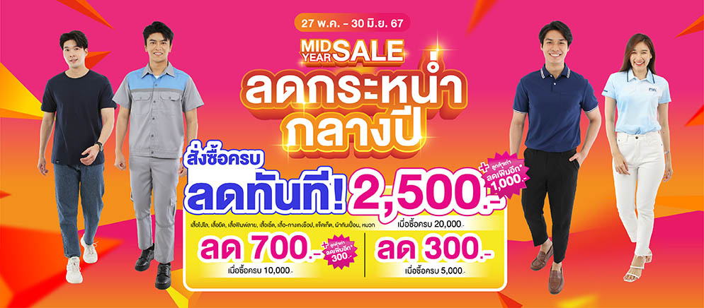 กลับมาอีกครั้งกับ “Mid Year Sale 2024” โปรโมชั่นลดกระหน่ำสินค้า สุดคุ้มแห่งปี ยกขบวนสินค้าสำเร็จรูป และสั่งผลิตใหม่ มาให้แล้วทั้งร้าน!! ในครั้งนี้ PMK Polomaker รวบรวมสินค้าพิเศษมาให้อีก กว่า 100 รายการ พร้อมสิทธิประโยชน์ให้ทั้ง ลูกค้าใหม่ และลูกค้าเก่า ด้วยส่วนลดสูงสุดถึง 3,500 บาท โปรโมชั่นลดกระหน่ำสินค้า แบบที่คุณไม่ควรพลาด เริ่มตั้งแต่ วันที่ 27 พฤษภาคม ถึง 30 มิถุนายน 2567 มีอะไรน่าสนใจบ้าง มาดูกันเลย