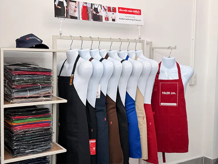 หมวก และ ผ้ากันเปื้อน : ไอเทมเสริมที่ช่วยเติมเต็มชุดยูนิฟอร์มให้ดูสมบูรณ์แบบและเป็นมืออาชีพยิ่งขึ้น โดยเฉพาะในกลุ่มธุรกิจบริการและร้านอาหาร