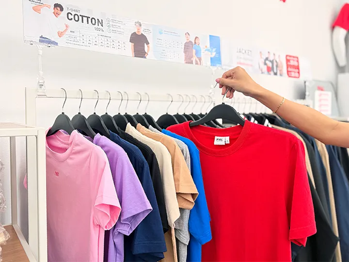 - สัมผัสตัวอย่างจริงก่อนตัดสินใจ : เราจัดเต็มเรื่องตัวอย่าง ทั้งชิ้นผ้า แบบเสื้อ และงานปัก-สกรีน เพื่อให้คุณได้เห็นและสัมผัสคุณภาพจริง ช่วยให้ตัดสินใจสั่งผลิตได้อย่างสบายใจและไม่ผิดหวัง