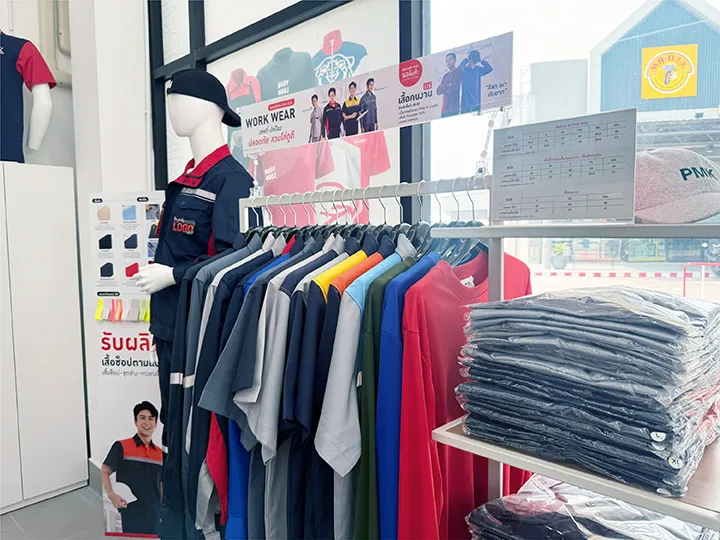 จุดเด่นที่ทำให้ PMK Jas Village แตกต่างกว่าร้านทำเสื้ออมตะนครทั่วไป คือการเปิดพื้นที่ให้ลูกค้าได้เข้ามาสัมผัสวัสดุและเห็นงานจริงก่อนตัดสินใจ ซึ่งช่วยลดความผิดพลาดในการสั่งซื้อออนไลน์ได้อย่างมาก