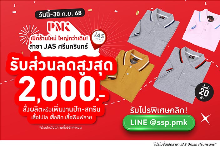 PMK เปิดแล้ว! ร้านปัก-สกรีนเสื้อสมุทรปราการ สาขา JAS Urban ศรีนครินทร์ ใหญ่กว่าเดิม พร้อมให้บริการแล้ววันนี้