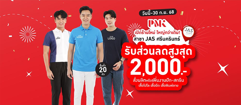 PMK เปิดแล้ว! ร้านปัก-สกรีนเสื้อสมุทรปราการ สาขา JAS Urban ศรีนครินทร์ ใหญ่กว่าเดิม พร้อมให้บริการแล้ววันนี้