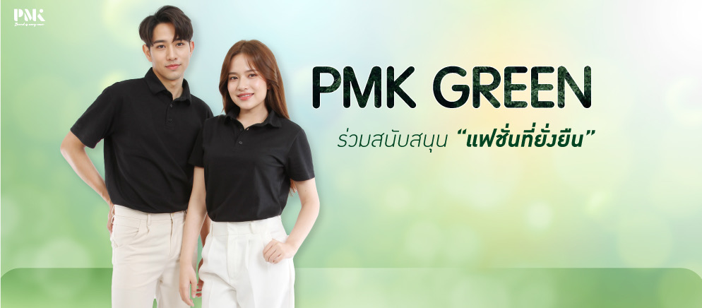 PMK  เป็นหนึ่งในแบรนด์ที่มีความมุ่งมั่นในการร่วมพัฒนาแฟชั่นที่ยั่งยืน โดยยึดถือหลักการของการลดผลกระทบต่อสิ่งแวดล้อมและสร้างความเป็นธรรมในกระบวนการผลิต ในชื่อ PMK GREEN ได้ดำเนินการในหลายด้านเพื่อตอบสนองต่อความต้องการของผู้บริโภคที่ต้องการสินค้าที่มีคุณภาพสูงและใส่ใจสิ่งแวดล้อม