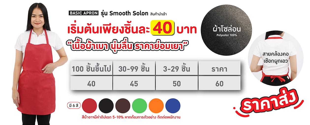 BASIC APRON Smooth Solon เนื้อผ้าโซล่อน Polyester 100% “เนื้อผ้าเบา นุ่มลื่น ราคาย่อมเยา” ราคาส่ง!