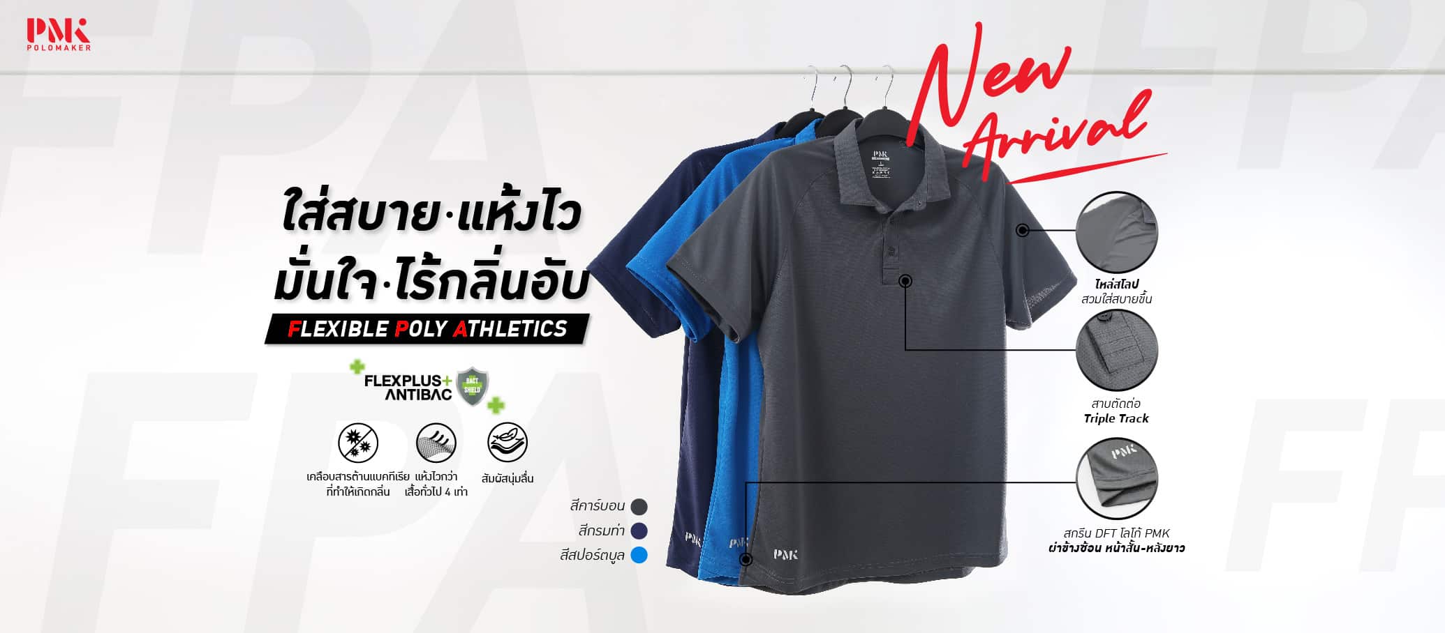 หรือหากใครอยากจะลองสัมผัสเนื้อผ้าใหม่ เสื้อกีฬาเนื้อผ้า FPA (Flexible Poly Athletics) ของ PMK POLOMAKER