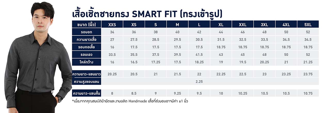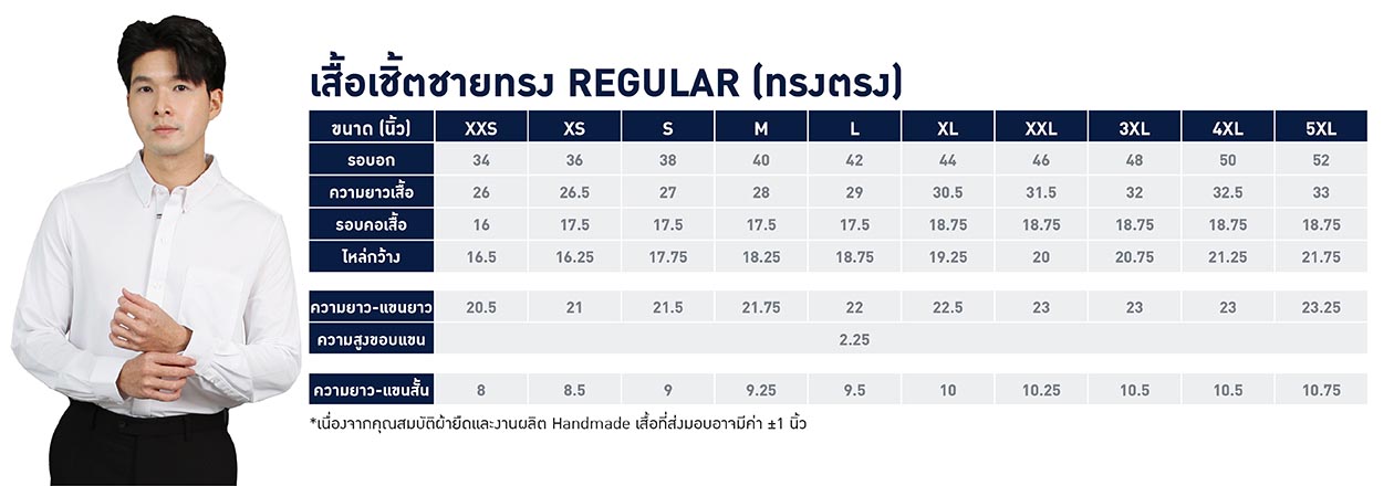 ไซส์เสื้อเชิ้ตสั่งตัด