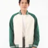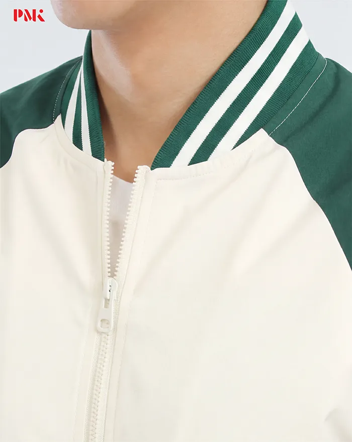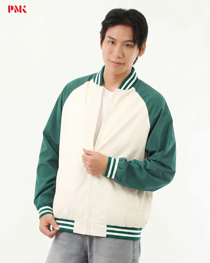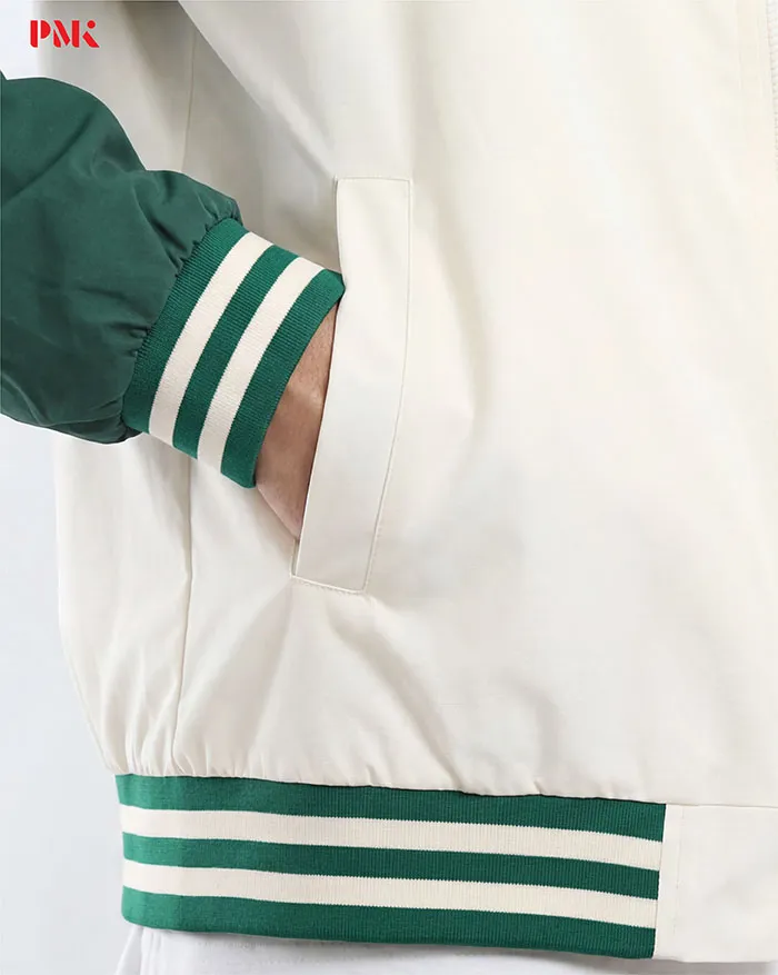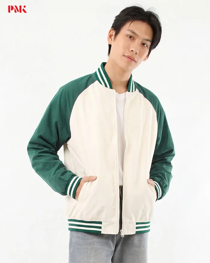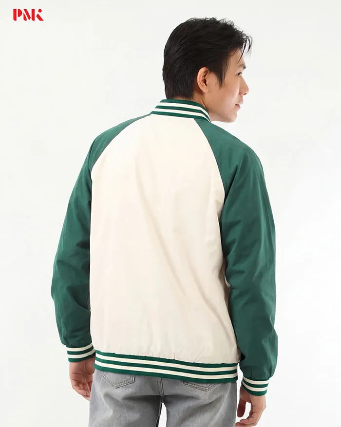 แจ็คเก็ต Baseball Premium สีครีมตัดต่อเขียว
