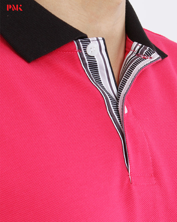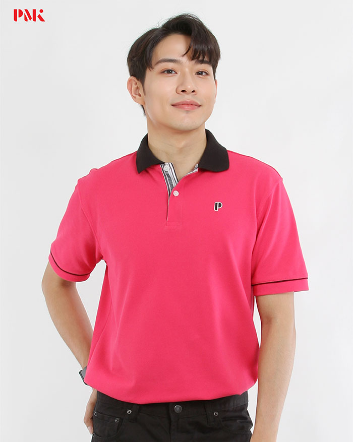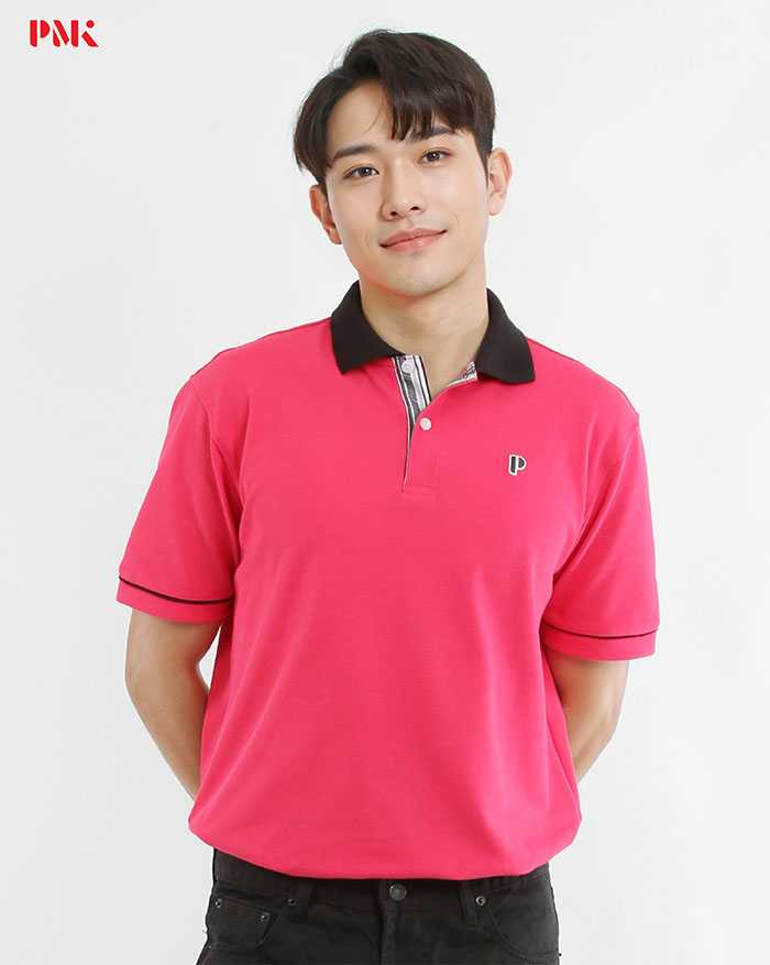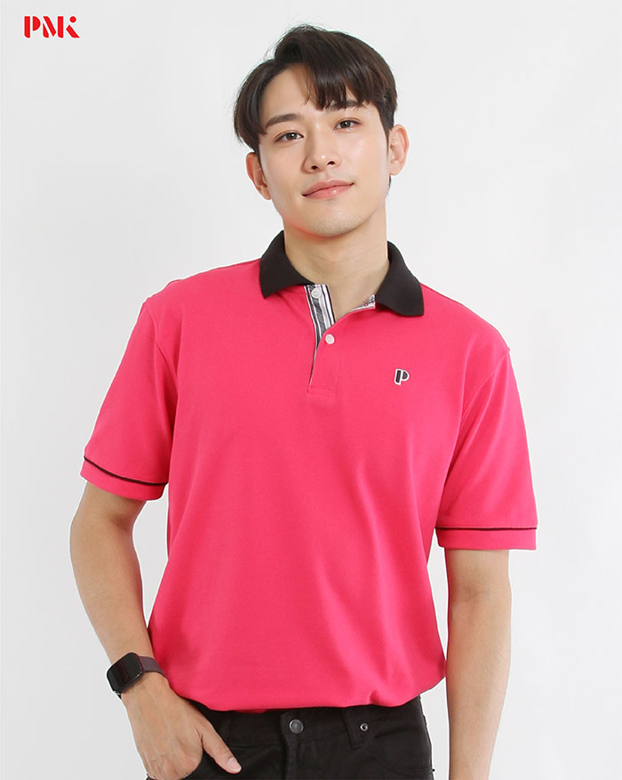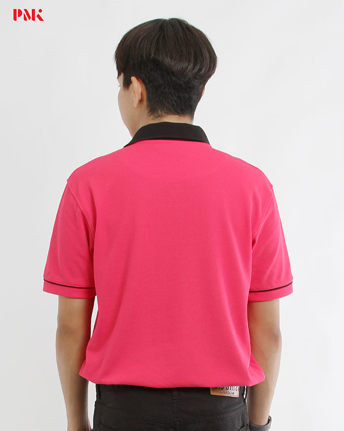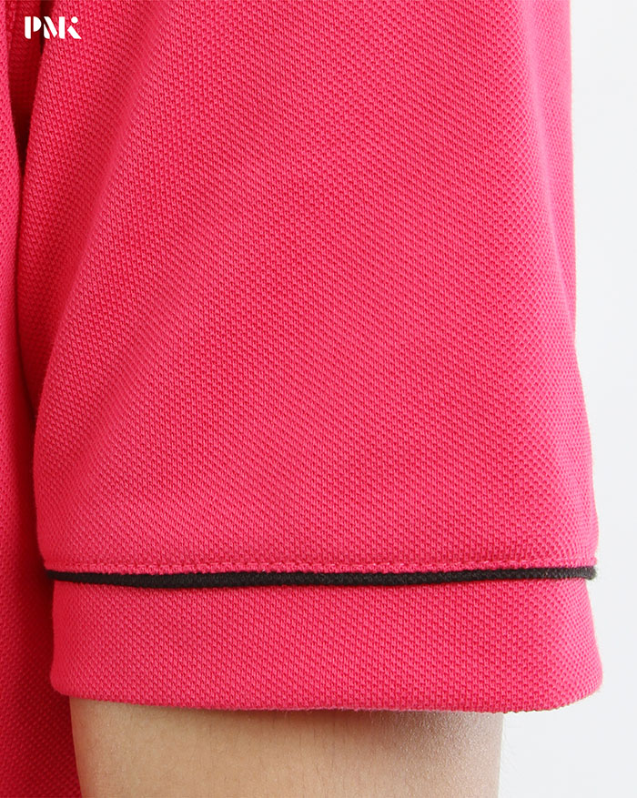เสื้อโปโล Coolplus Coolway สีชมพูบานเย็นปกดำ