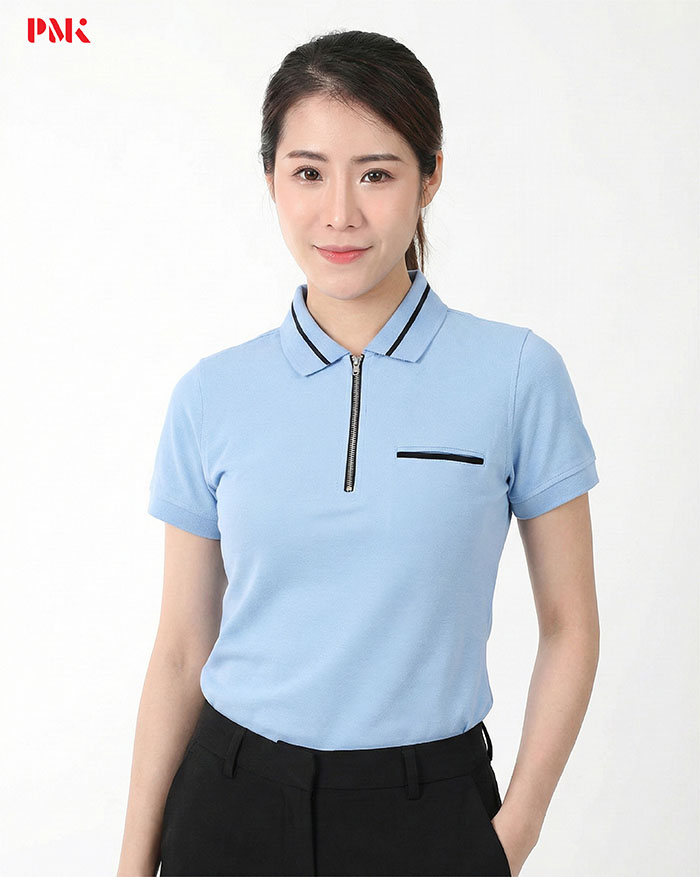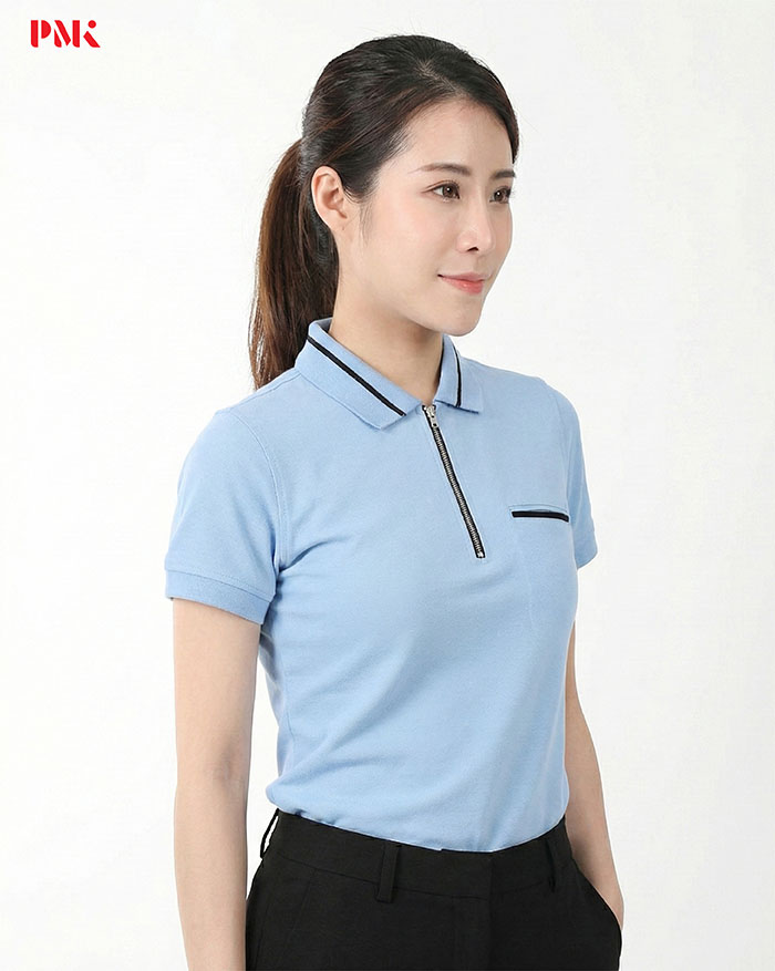 เสื้อโปโล CoolPlus CA Zipper Wear สีฟ้า