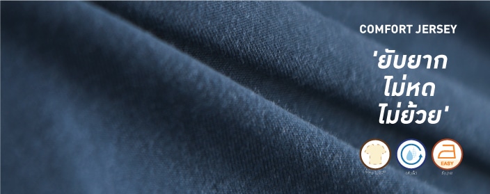 เนื้อผ้าทอแบบ Single Jersey มีความเรียบ เนียนนิ่ม เด้งทิ้งตัว ไม่หด ไม่ย้วย และเป็นผ้าที่ยับยากดูแลรักษาง่าย ด้วยความที่ Comfort Jersey เป็นเนื้อผ้าคุณภาพดีในราคาคุ้ม จึงเป็นอีกหนึ่งตัวเลือกที่คุ้มค่า เมื่อเทียบกับราคา