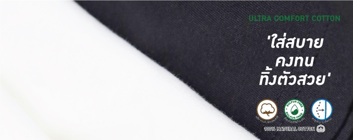 เสื้อยืดคอตตอน ‘เนื้อนุ่ม’ ใส่สบาย ซับเหงื่อได้ดีเยี่ยม ด้วยเส้นใยขนาดใหญ่ ทำให้ผ้ามีความนุ่ม มีน้ำหนัก ทิ้งตัวสวย และด้วยเส้นใยที่มีความเหนียว แข็งแรง คงทน ทำให้ใส่ได้ยาวนาน Ultra Comfort Cotton จึงเป็นอีกหนึ่งตัวเลือกที่คุณภาพคุ้มราคา สำหรับผ้าคอตตอนแท้ 100% เมื่อเทียบกับเนื้อผ้าคอตตอนร้านอื่นในท้องตลาด
