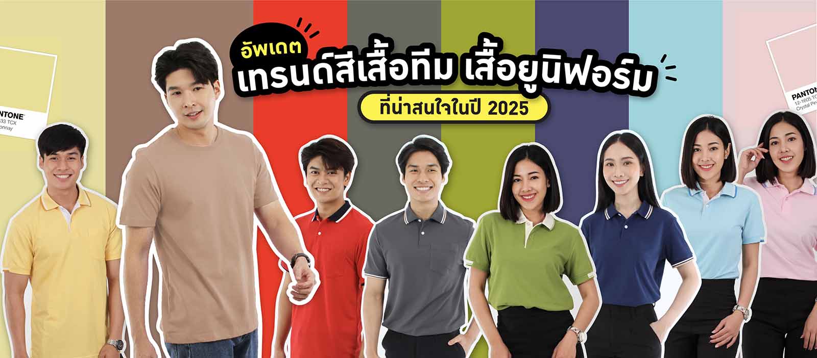 ในปี 2025 เทรนด์สีเสื้อทีม และยูนิฟอร์มได้เปลี่ยนไปมากมาย สีสันไม่ได้แค่สร้างความสวยงามเท่านั้น แต่ยังสื่อถึงความหมาย และบ่งบอกถึงตัวตนขององค์กร การเลือกใช้สีที่เหมาะสมจะช่วยสร้างภาพลักษณ์ที่ชัดเจนและสอดคล้องกับเป้าหมายขององค์กรของคุณ สีที่ได้รับความนิยมในปีนี้เช่น Chardonnay, Clearwater, Crystal Pink, Cherry Tomato, Grenoble Green, Skipper Blue, และ Smokery Olive ต่างมีเอกลักษณ์และความหมายที่เฉพาะเจาะจง เลือกสีที่เหมาะสมกับทีมของคุณ เพื่อสร้างภาพลักษณ์ที่น่าจดจำและส่งเสริมความเป็นทีมที่แข็งแกร่ง