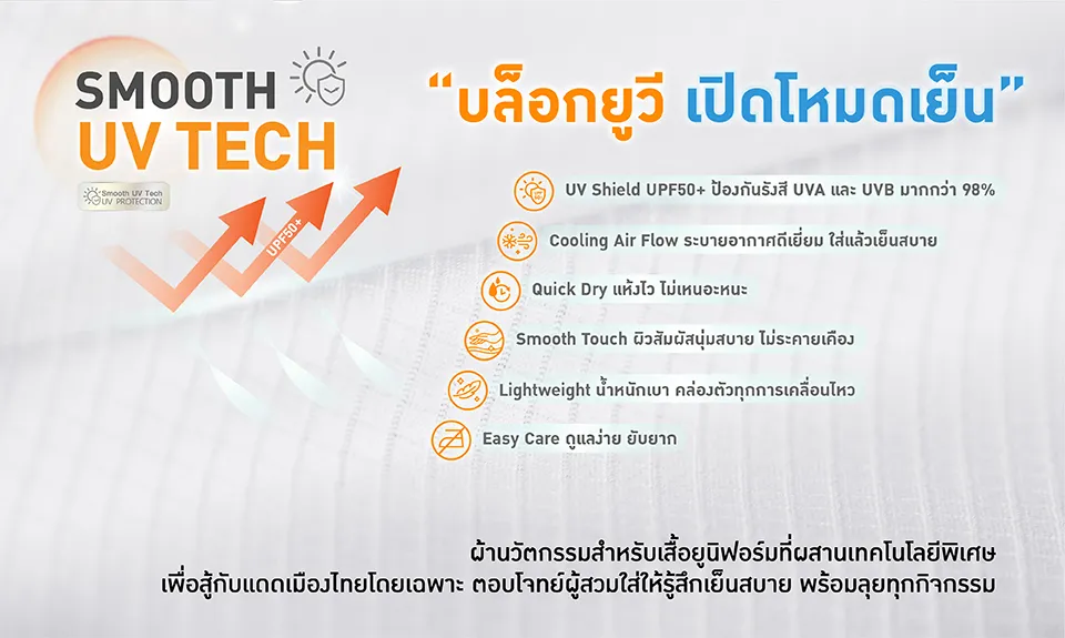 ✅ *มีนวัตกรรมผ้าแก้ปัญหา: เลือกได้ทั้ง “ใส่แล้วเย็น (CoolPlus)” หรือแบบ “ไม่ต้องรีด”