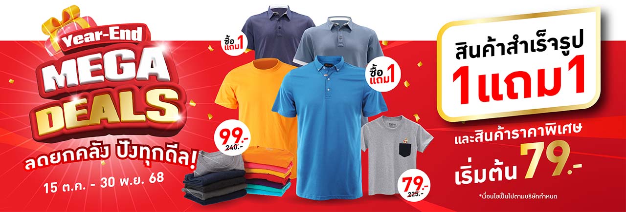 ช้อปสนุกส่งท้ายปีกับ Year-End Mega Deals 2025 ราคาลดไฟลุก ไม่ต้องซื้อเยอะก็ฟินได้! เสื้อยืดเด็กเพียง 79 บาท, เสื้อยืดคอตตอนแท้ 100% เพียง 99 บาท, เสื้อโปโลเด็ก 149 บาท, และเสื้อโปโลรุ่นไม่ต้องรีด ยับยาก เพียง 159 บาท ให้คุณเริ่มต้นช้อปง่าย ๆ ลดตั้งแต่ตัวแรก
